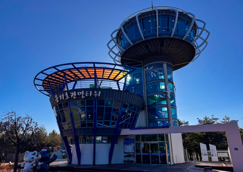 강원도 고성 송지호 관망타워 외관, 철새 관찰과 호수 전망이 아름다운 생태 관광지