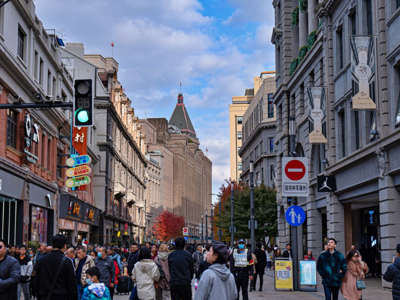 상하이 난징루 번화가 보행자 거리, 관광객과 현지인들이 어우러진 쇼핑 명소