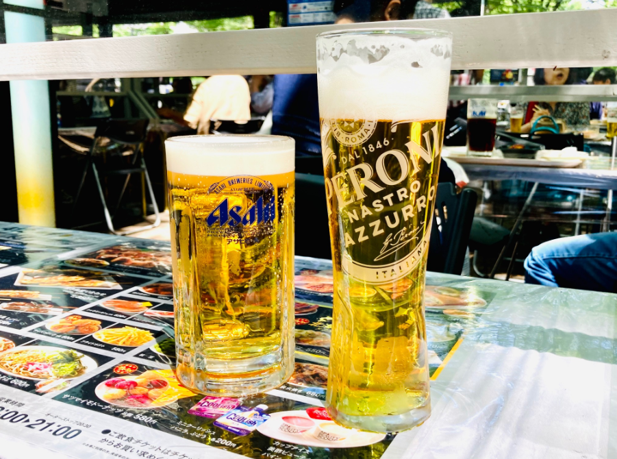 두 번째는 아사히 슈퍼드라이와 야키소바 조합입니다. 아사히 슈퍼드라이의 청량감과 드라이함이 짭짤하고 고소한 야키소바의 맛을 더욱 돋보이게 해줘요. 특히 더운 날씨에 이 조합은 정말 최고입니다! 땀 흘리면서 시원한 맥주 한 잔에 야키소바를 먹으면 여행의 피로가 싹 가시는 느낌이 들 거예요.