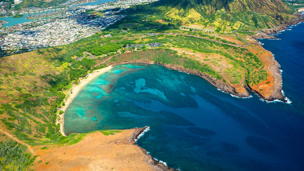 오아후 가족여행에서 바다를 빼놓을 수 없겠죠? 저는 여러 해변 중에서도 하나우마 베이(Hanauma Bay)를 선택했어요. 이곳은 자연 보호 구역으로 지정되어 있어서 미리 온라인으로 입장 예약을 해야만 들어갈 수 있답니다. 예약이 정말 치열해서 저도 새벽에 알람까지 맞춰놓고 간신히 성공했어요. 하나우마 베이에 도착해서 보니, 왜 그렇게 예약이 치열한지 바로 알 수 있었어요. 초록빛 산과 에메랄드빛 바다가 어우러진 풍경은 마치 그림 같았죠. 입장하기 전에는 자연 보호 교육 영상을 시청해야 하는데, 하와이의 아름다운 자연을 지키기 위한 노력을 느낄 수 있어 인상 깊었어요. 이 교육 덕분에 더욱 책임감을 가지고 스노클링을 즐길 수 있었죠.