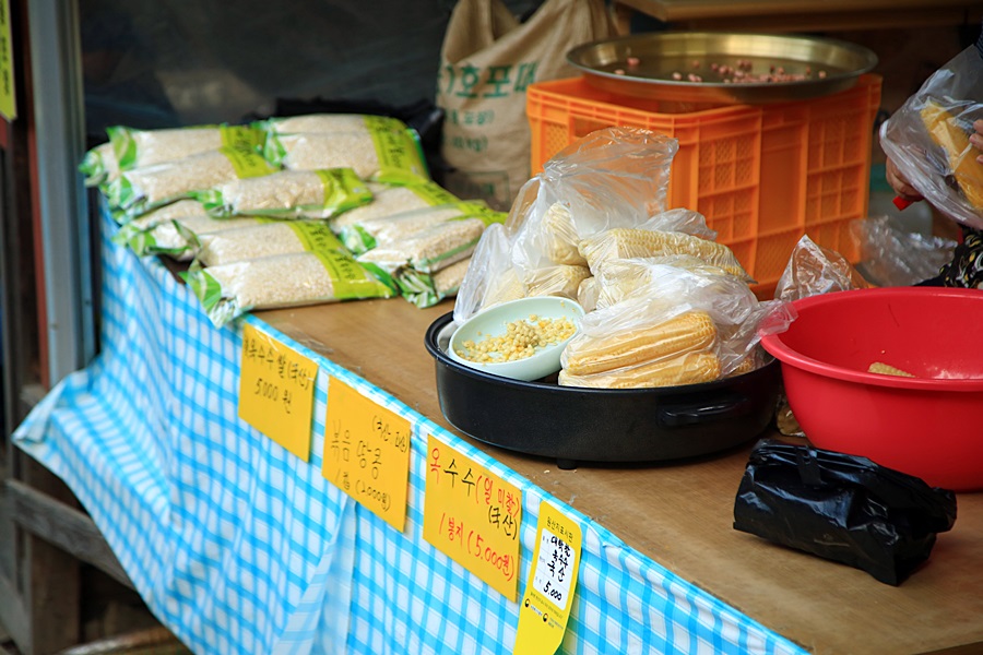 그리고 8월은 괴산의 자랑, 대학찰옥수수가 제철이에요. 산막이옛길 근처 곳곳에서 옥수수를 팔고 있었는데, 갓 쪄서 따끈한 옥수수를 한입 베어 물면 쫀득하고 달콤한 맛이 입안 가득 퍼져요. 진짜 다른 지역에서 먹는 옥수수랑은 차원이 다르더라고요. 괜히 '대학'찰옥수수라고 불리는 게 아니구나 싶었어요. 걷는 도중에 간식으로 먹거나, 집에 돌아가는 길에 선물용으로 몇 개 사 가시는 것도 좋은 방법이에요. 8월에 괴산 산막이옛길에 오셨다면 싱싱한 대학찰옥수수 맛은 꼭 봐야 한다고 생각해요!