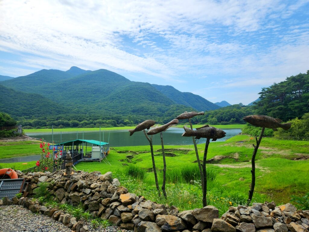 8월 괴산 산막이옛길의 가장 큰 매력 중 하나는 바로 싱그러운 녹음이에요. 눈을 돌리는 곳마다 짙푸른 나뭇잎들이 가득해서 보는 것만으로도 눈이 정화되는 기분이 들었죠. 특히 산책로 중간중간에 있는 소나무 숲길을 걸을 때는 피톤치드 향이 가득해서 온몸이 상쾌해지는 느낌이었어요. 8월에 방문하면 산막이옛길의 싱그러움을 제대로 느낄 수 있는데, 이때만 볼 수 있는 다양한 들꽃이나 곤충들을 관찰하는 재미도 쏠쏠하답니다. 가족 단위로 방문하신다면 아이들과 함께 자연 학습을 하기에도 정말 좋은 장소예요. 8월의 뜨거운 햇살을 피하고 싶을 때는 숲길을 따라 걸으며, 시원한 바람을 맞고 싶을 때는 괴산호변 데크길을 걷는 식으로 코스를 조절할 수 있어서 더욱 좋아요.