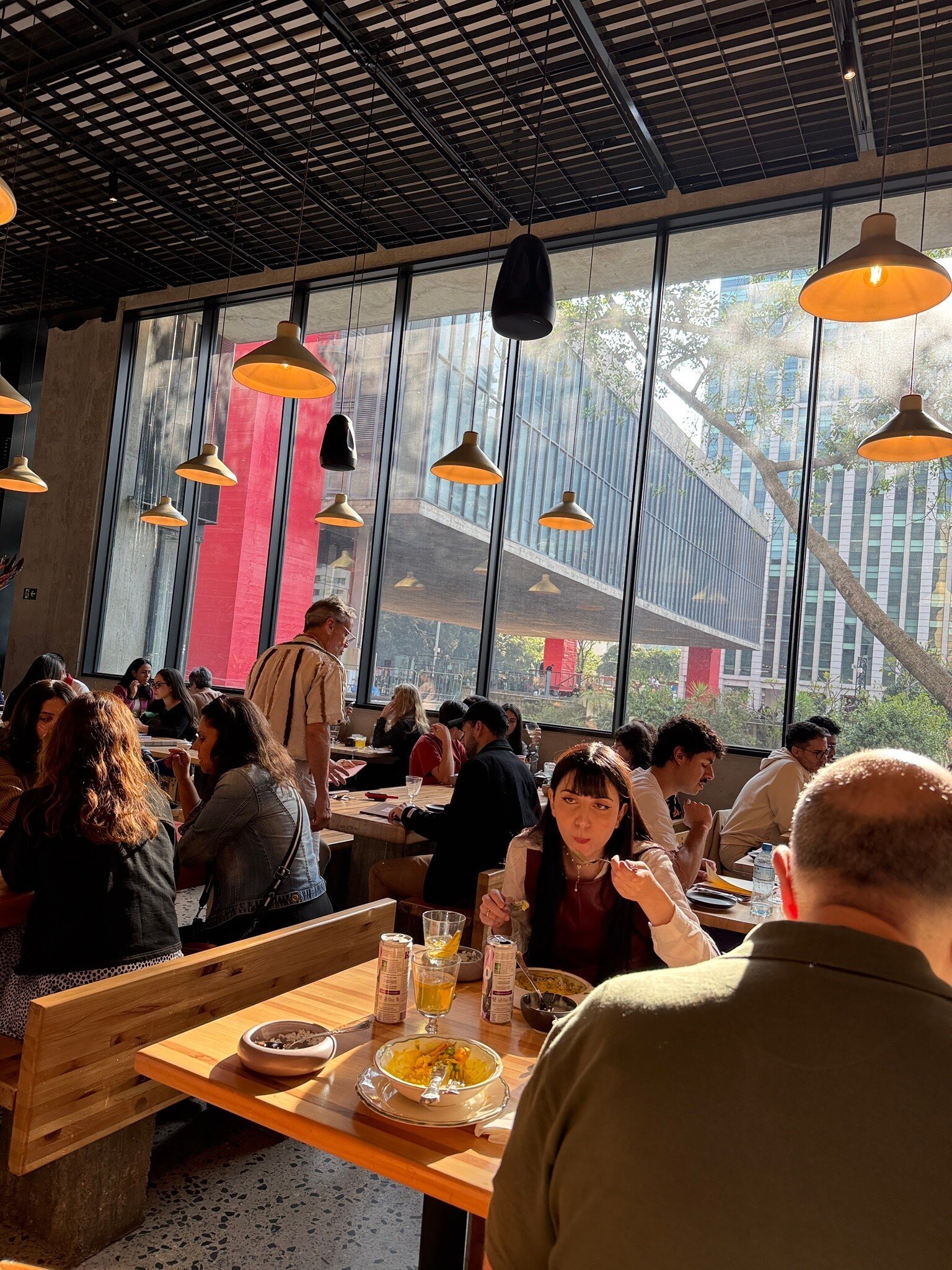 상파울루 미술관, 즉 MASP는 건축가 리나 보 바르디가 설계한 현대 건축의 기념비적인 작품이에요. 미술관에 가기 전부터 친구가 “그냥 지나치면 안 돼. 건물 자체가 전시야!”라고 몇 번이나 강조했거든요. 막상 도착해서 보니 그 말이 무슨 뜻인지 바로 알겠더라고요. 파울리스타 대로 위로 4개의 거대한 붉은 기둥이 건물을 떠받치고 있고, 그 위로 본 건물이 마치 공중에 떠 있는 것처럼 보였어요. 솔직히 말해서 처음에는 저게 어떻게 가능할까 싶었죠. 그니까요, 건축에 대해 잘 모르는 저도 단번에 ‘아, 이건 진짜 특별하다’라는 생각이 들 정도였으니까요. 건축가 보 바르디는 이 아래 공간을 ‘자유 공간(piloti)’이라고 불렀다고 해요. 시민들이 자유롭게 모여서 소통하고 문화 활동을 할 수 있도록 의도한 거죠. 제가 방문했던 날은 일요일이었는데, 사람들이 이 공간에서 벼룩시장을 열고, 악기를 연주하고, 친구들과 모여 이야기를 나누는 모습이 너무 인상적이었어요. 미술관 아래에서 흘러나오는 활기찬 에너지가 위층에 있는 미술관의 고요함과 대비되면서 묘한 매력을 풍기더라고요. 미술관 건물이 단순히 예술 작품을 보관하는 장소를 넘어, 도시와 사람들을 이어주는 소통의 장 역할을 하고 있다는 게 정말 멋지다고 느꼈어요. 저도 모르게 한참을 그 아래에서 사람들을 구경했답니다.